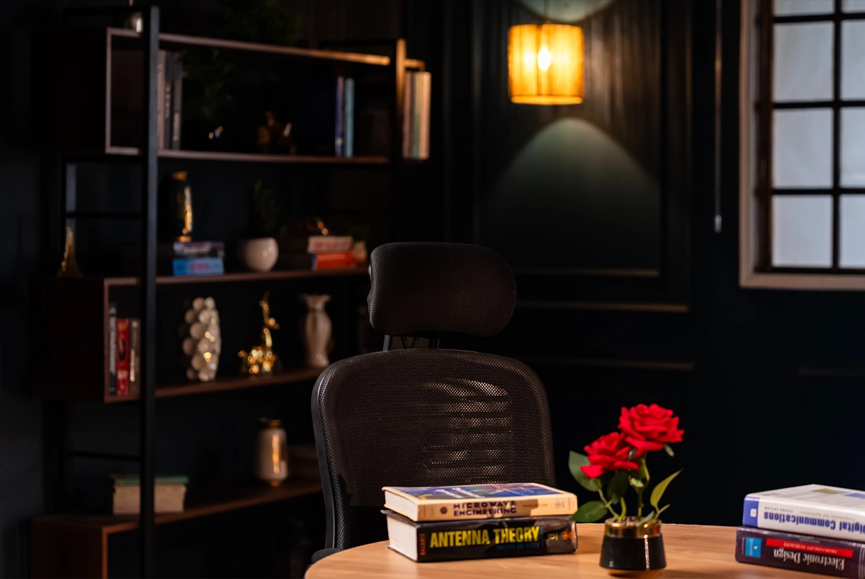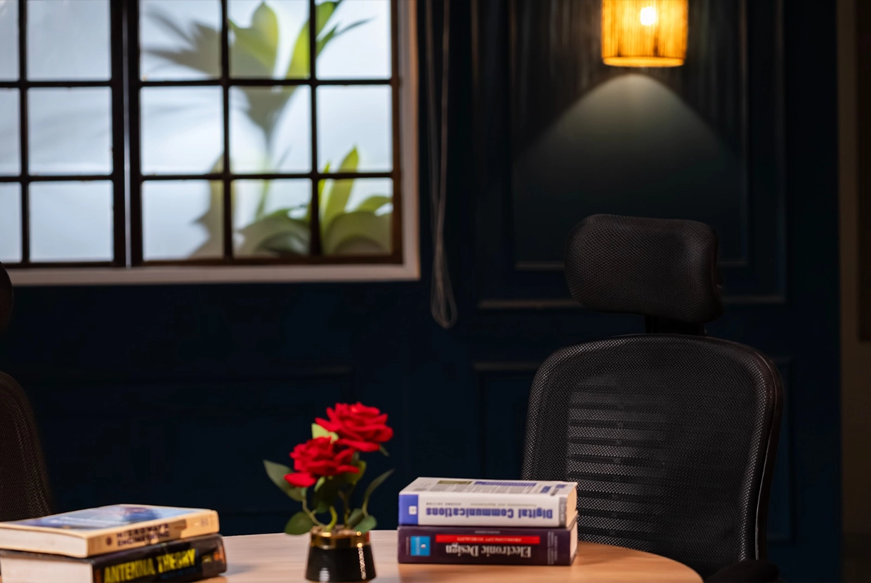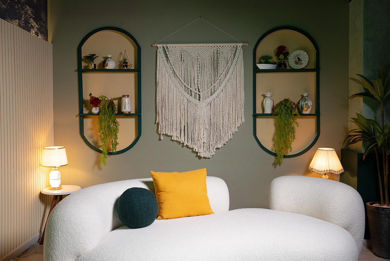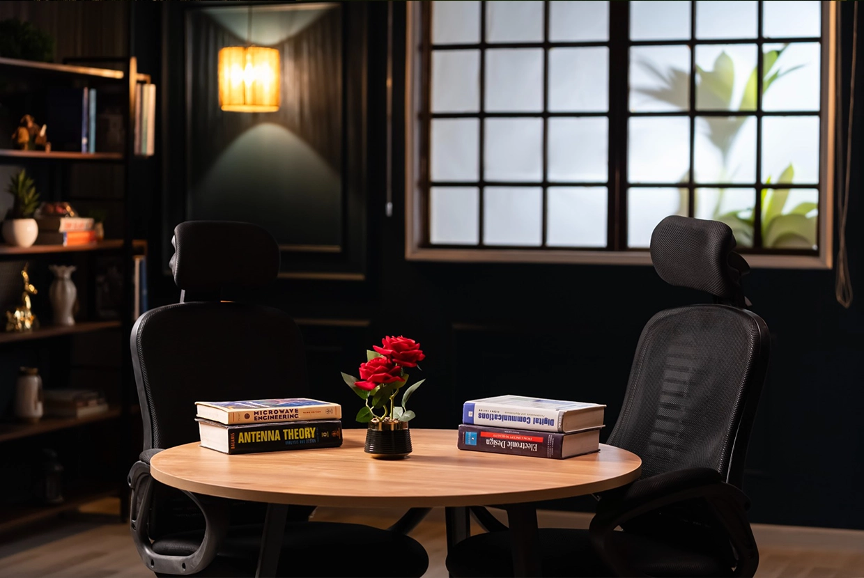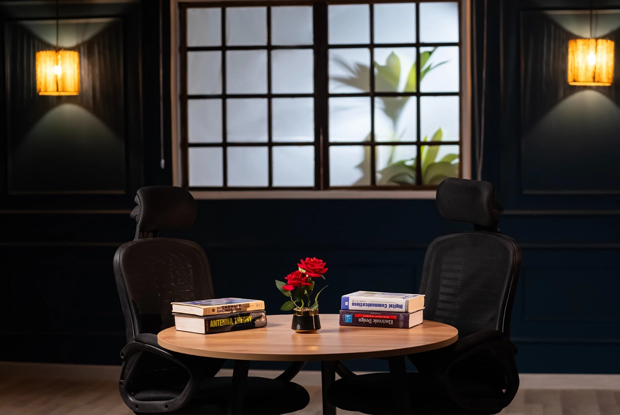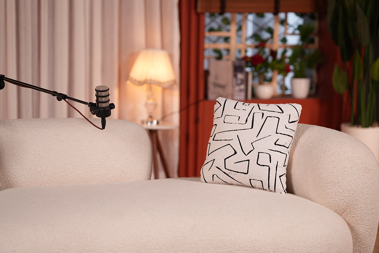 - We select the perfect location We have 8 completely different plateaus (from formal office setups to cozy living rooms to modern, colorful spaces with changeable lighting). We’ll choose the one that fits your concept—or customize it according to your needs.