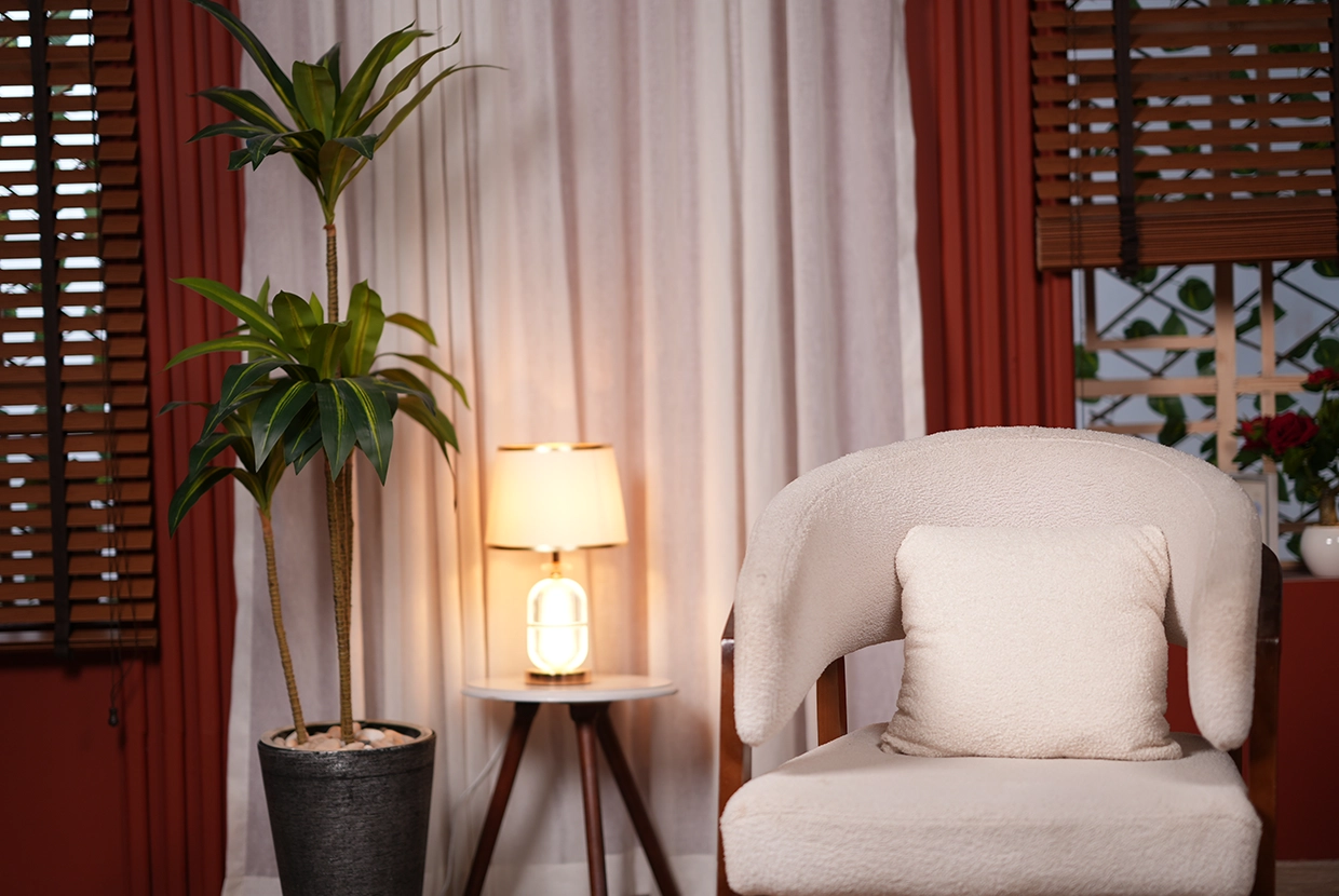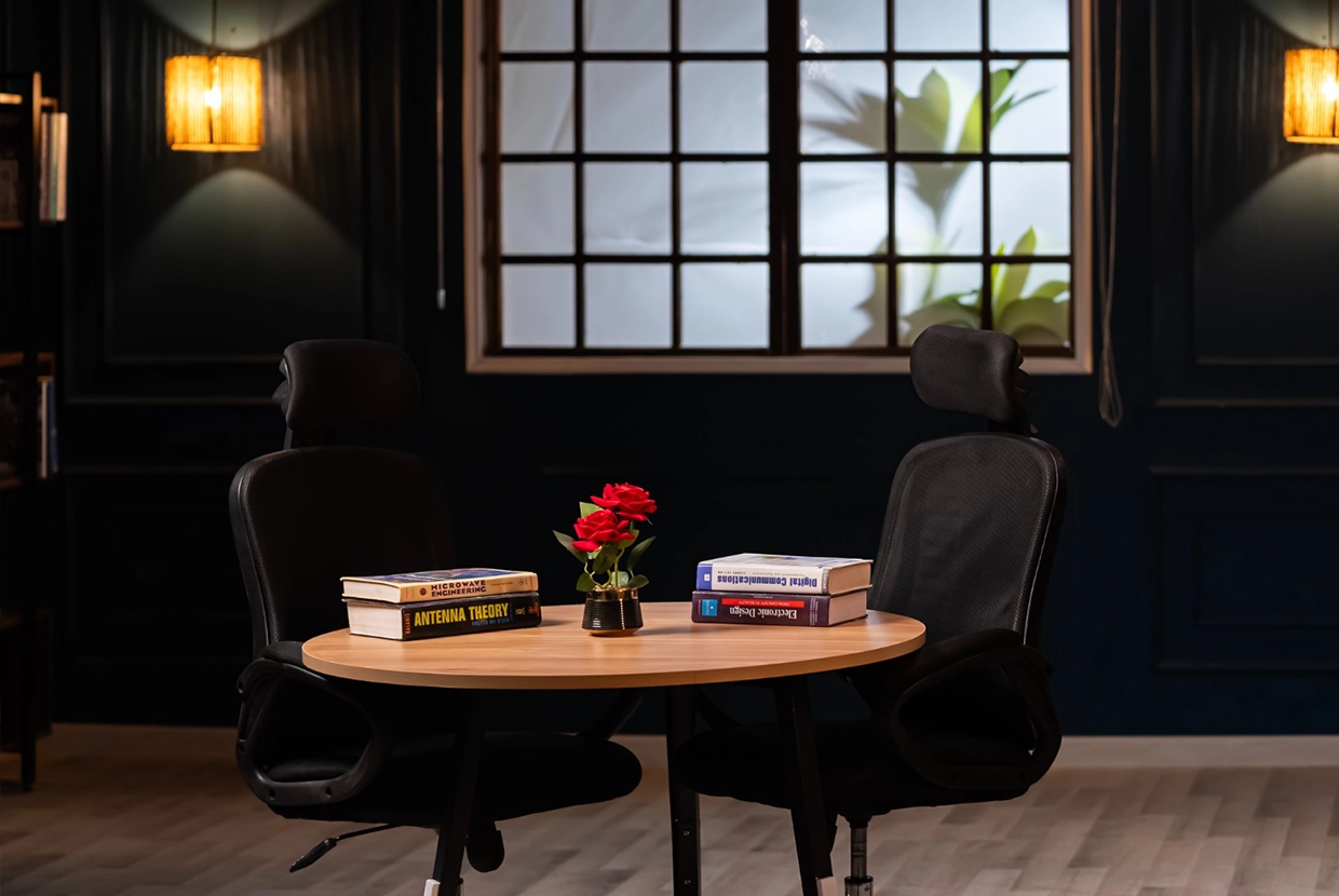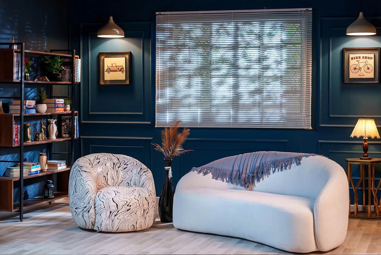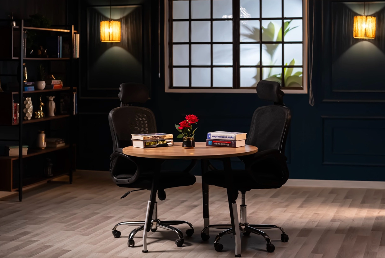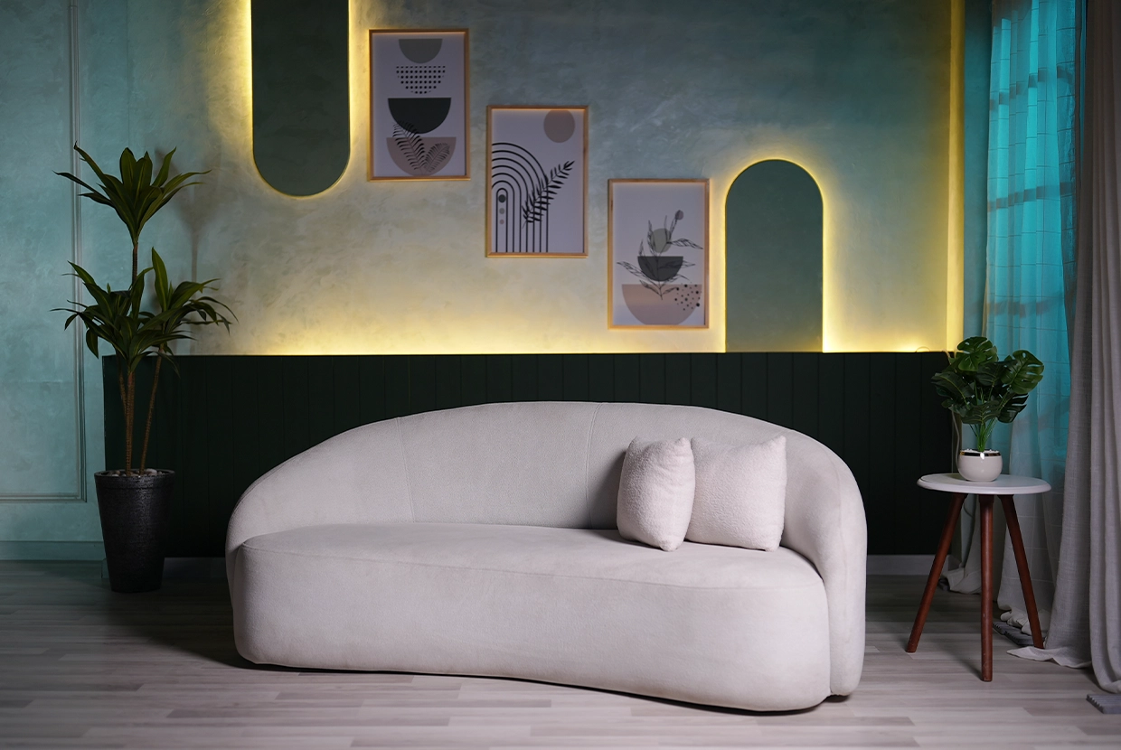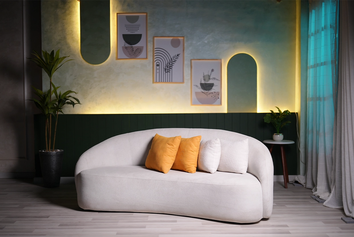 - We select the perfect location We have 8 completely different plateaus (from formal office setups to cozy living rooms to modern, colorful spaces with changeable lighting). We’ll choose the one that fits your concept—or customize it according to your needs.
